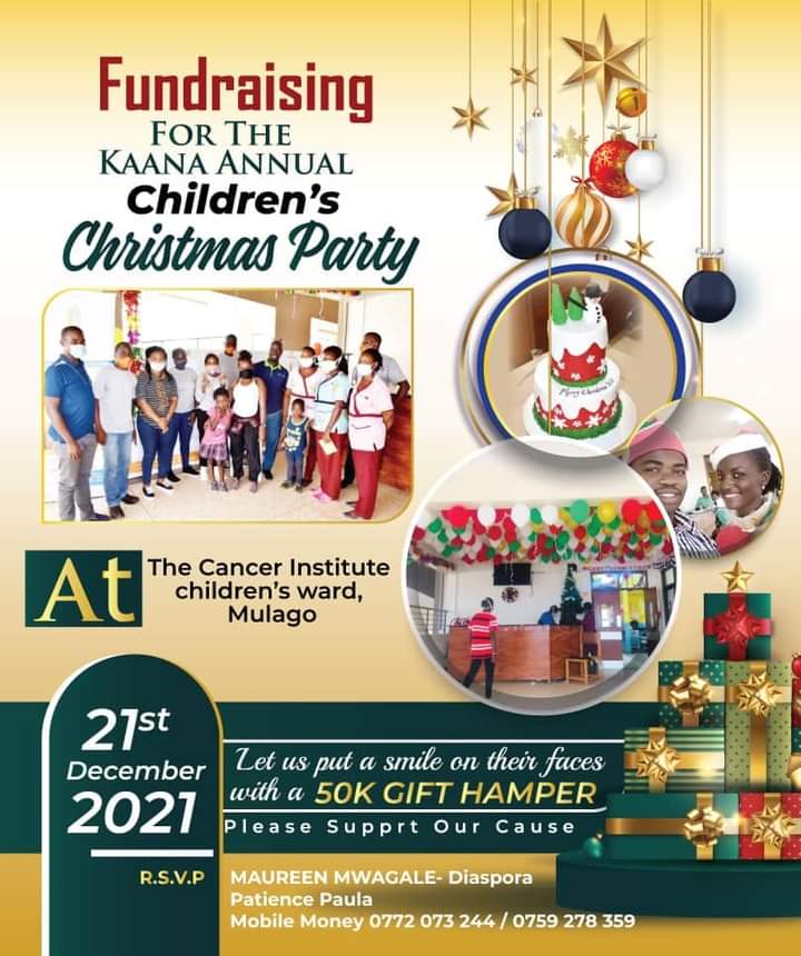 Times like these in perfect health,meant a fundraiser and making children happy. These are the little ones (0-14years) suffering from Cancer. The most common cancers are leukemias, followed by brain and other CNS tumors, lymphomas, neuroblastoma, kidney tumors, and malignant bone tumors . My good friend, Maureen Mwagale and others always organize a Christmas party at the Children’s Cancer Ward, Mulago Hospital to just get the children happy and make the season memorable.