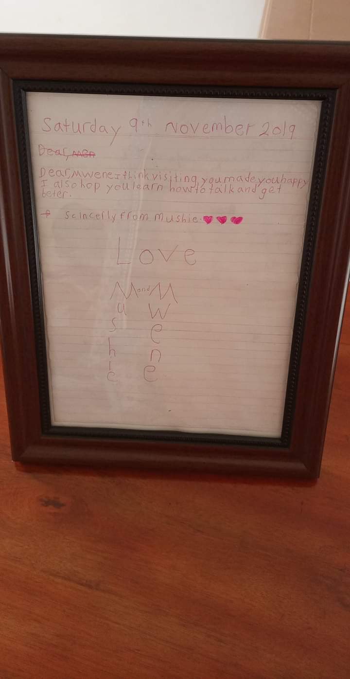 Every morning, I look at Kirsten’s writing to get the mental strength to face the day. I show that writing to everyone who comes to visit me. It is a prized possession that I even framed it . I am like that kid that brings out the best toy to show the visitors