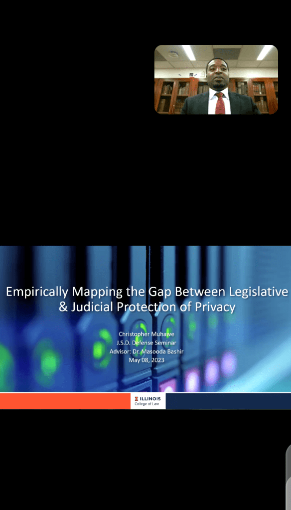 A few days ago , Chris told me about the Dissertation defense and invited me to attend it since it was by zoom . I learned a lot in his defense and he surely unpacked the privacy rights harm and the issue of standing as a litigant. The committee of the University and examiners have been satisfied with Candidate Christopher Muhawe has been awarded a Doctor of Juridical Science and in the Uganda speak , I can say that he is a Doctor , well done well done Ndugu. May life continue being kind to you. Glad to have witnessed history .