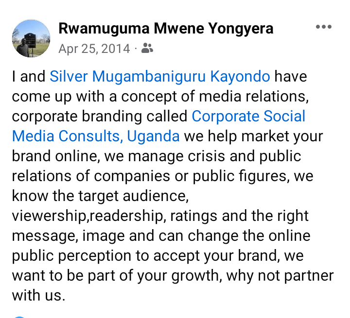 Another great idea that we birthed was a Social Media consults, something akin to what modern Day influencers are doing today and this is years ago