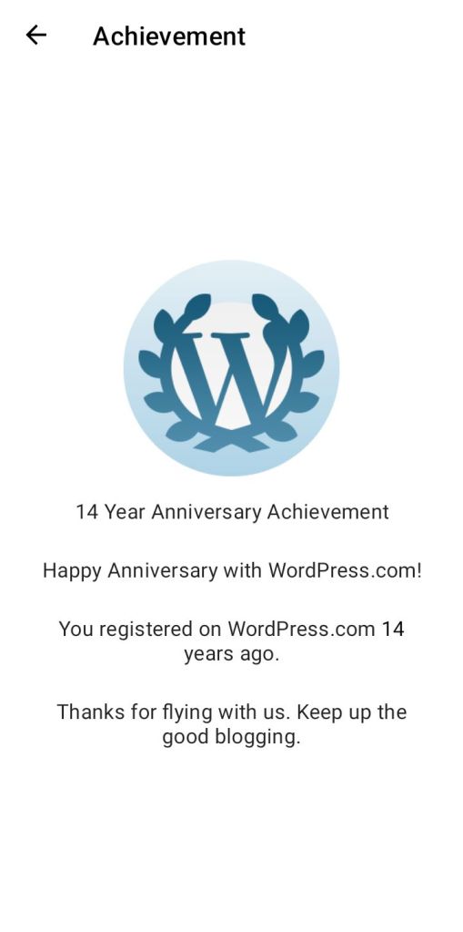 So I got a notification from WordPress recently and it’s my 14th anniversary and oh my I think I am (this) the oldest blogger/blog.